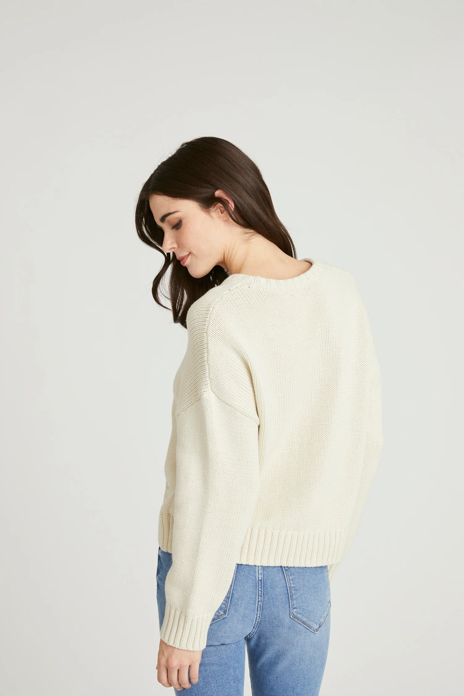 • Cut / Fit: Relaxed, slightly cropped silhouette with a classic crew neckline and ribbed hem and cuffs